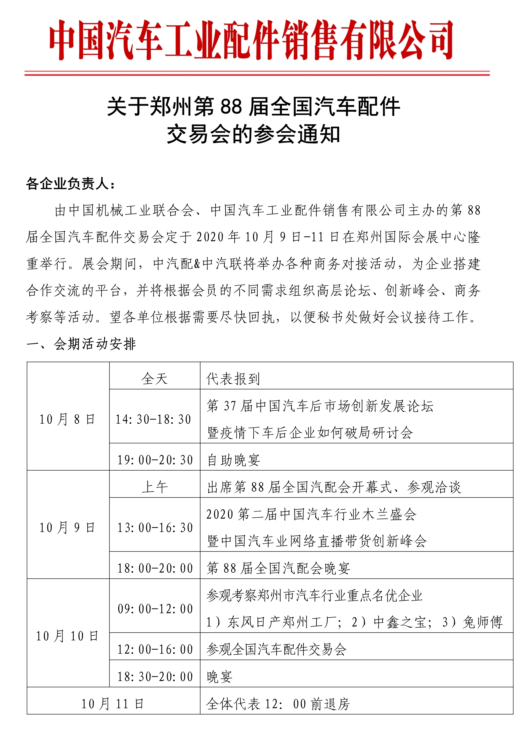 第88屆全國汽配會(鄭州)參會通知