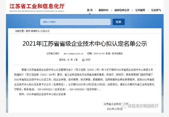 近日,江蘇省工信廳對(duì) 2021年省級(jí)企業(yè)技術(shù)中心進(jìn)行公示,駱氏技術(shù)中心光榮上榜。
