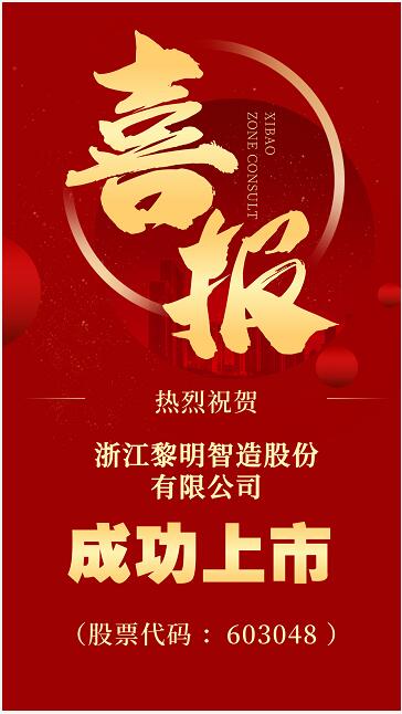 2021年11月16日,浙江黎明智造股份有限公司(簡稱:浙江黎明)于上海證券交易所主板掛牌上市,股票代碼為“SH.603048”。