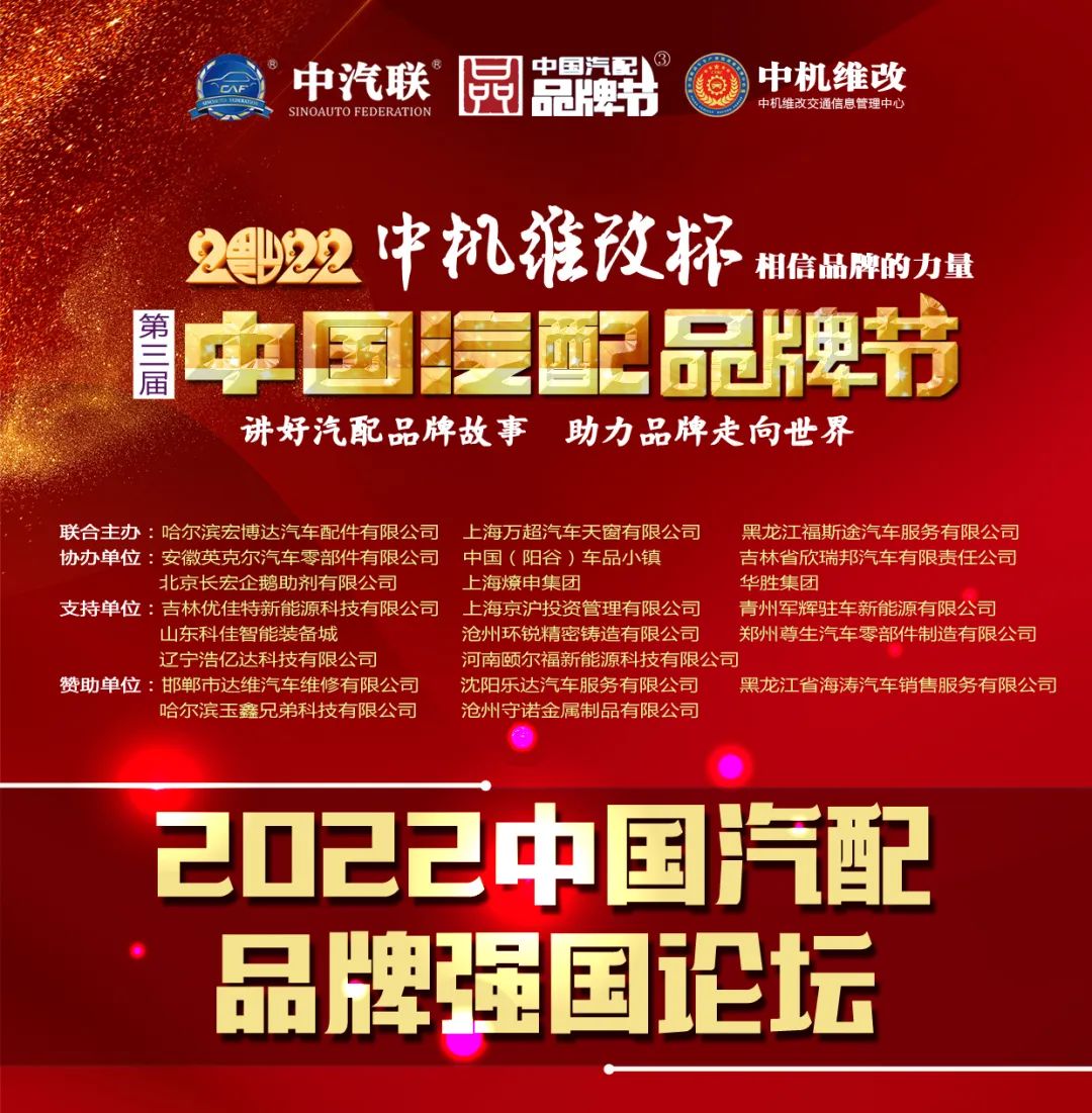 讓我們紅紅火火、相約2022中機維改杯第三屆中國汽配品牌節(jié),為中國自主汽配品牌騰飛加油鼓勁!