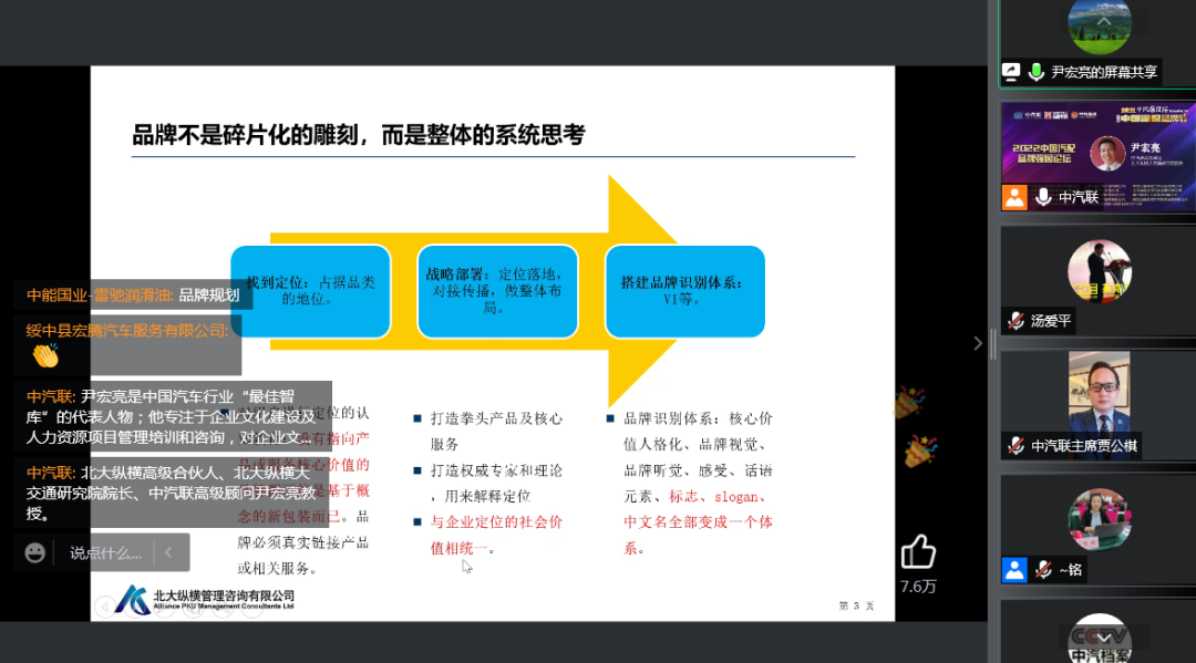 北大縱橫高級合伙人、北大縱橫大交通研究院院長尹宏亮為大家分享了“品牌規(guī)劃”的專題報告。尹院長是全國資深管理專家,深諳汽車行業(yè)組織的變化趨勢,曾經(jīng)為行業(yè)內多家企業(yè)提供咨詢服務,內容涉及:戰(zhàn)略、營銷、組織、薪酬、考核、企業(yè)文化等多方面內容,是中國汽車行業(yè)“最佳智庫”的代表人物;他專注于企業(yè)文化建設及人力資源項目管理培訓和咨詢,對企業(yè)文化建設及人力資源實操過程中常見問題及難題有獨到見解;近二十年的工作積累,十年的培訓及管理咨詢經(jīng)驗,先后為近百家以上的企業(yè)或品牌提供過專業(yè)的管理咨詢。