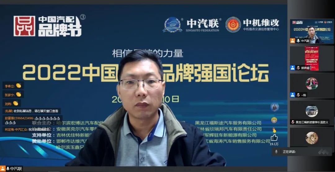 2022中國汽配品牌強國論壇由中汽聯(lián)、中機維改、中汽配等機構共同主辦;由哈爾濱宏博達汽車配件有限公司、上海萬超汽車天窗有限公司、黑龍江福斯途汽車服務有限公司聯(lián)合主辦;由中國(陽谷)車品小鎮(zhèn)、華勝集團、上海燎申集團、吉林欣瑞邦汽車有限責任公司、安徽英克爾汽車零部件有限公司、北京長宏企鵝助劑有限公司友情協(xié)辦;由吉林優(yōu)佳特新能源科技有限公司、上海京滬投資管理有限公司、青州軍輝駐車新能源有限公司、山東科佳智能裝備城、鄭州尊生汽車零部件制造有限公司、滄州環(huán)銳精密鑄造有限公司、遼寧浩億達科技有限公司、河南頤爾福新能源科技有限公司特別支持;由邯鄲市達維汽車維修有限公司、沈陽樂達汽車服務有限公司、黑龍江省海濤汽車銷售服務有限公司、哈爾濱玉鑫兄弟科技有限公司、滄州守諾金屬制品有限公司友情贊助;由德州市鑫雙恒汽車服務有限公司、浚縣李春亮汽車維修門市部 、滄州春立汽車服務有限公司、臨沂富裕汽車服務有限公司、綏中縣宏騰汽車服務有限公司、榆樹市鑫運程汽車服務限公司、綏中縣鑫發(fā)汽車服務有限公司、臨清市浩航汽車服務有限公司特別祝賀;近千名企業(yè)家全程在線收看了國強論壇,點贊數(shù)接近200000個。