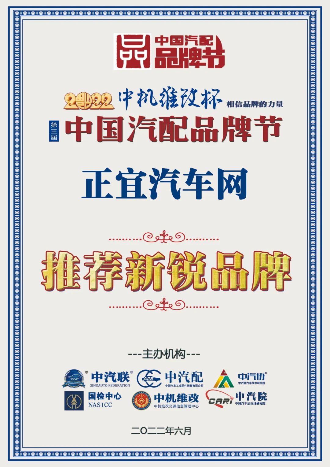 據(jù)《2022中國汽配品牌榜》榜單顯示:正宜汽車網(wǎng)榮膺“2022中國汽配行業(yè)推薦新銳品牌”大獎(jiǎng)。