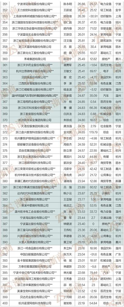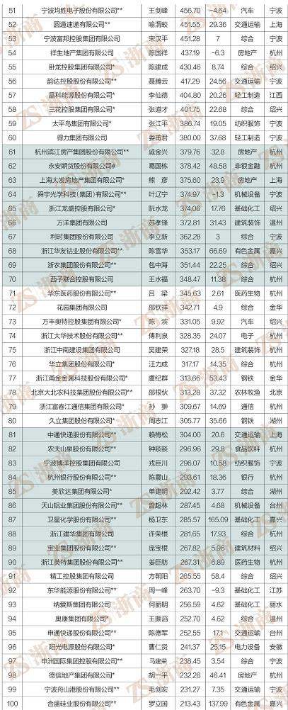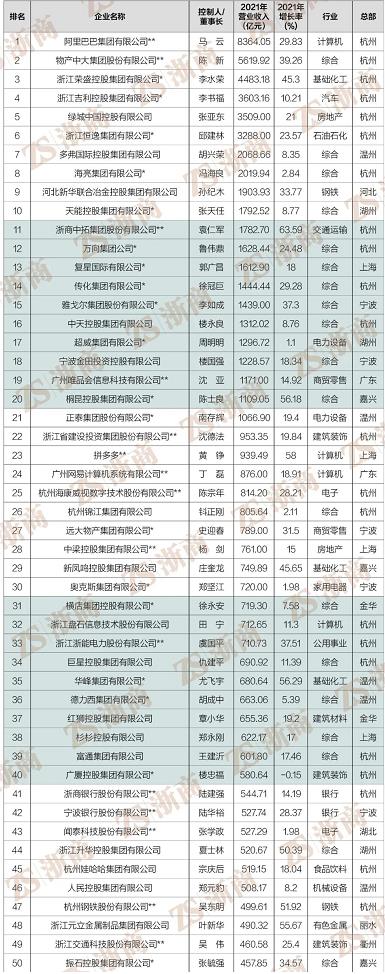 “2022浙商全國(guó)500強(qiáng)”全榜單