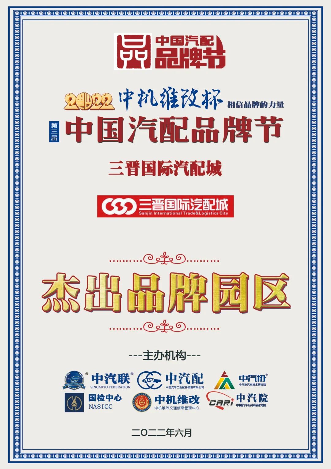 據(jù)《2022中國(guó)汽配品牌榜》榜單顯示:三晉國(guó)際汽配城榮膺“2022中國(guó)汽配杰出品牌園區(qū)”大獎(jiǎng)。