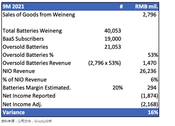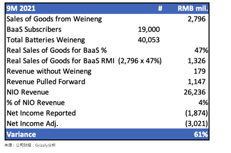 與蔚能的安排幫助蔚來將其截至2021年9月的9個月的收入夸大了近4%。這直接流入其凈利潤;蔚來的調(diào)整后凈虧損應(yīng)比報告數(shù)字大61%。