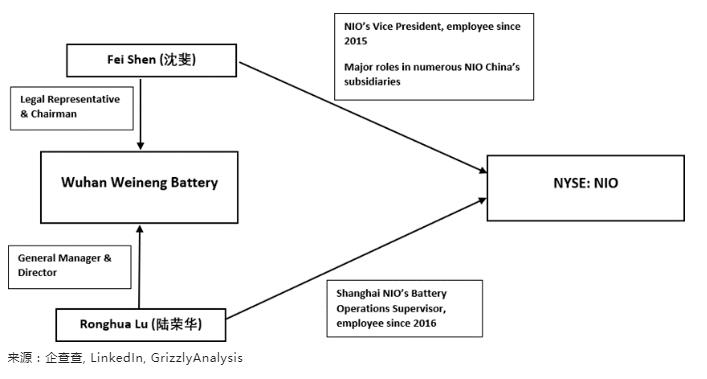 蔚來的一些高層領(lǐng)導(dǎo)也在武漢蔚能擔(dān)任行政職務(wù),這是一個重大的利益沖突,說明蔚來能夠輕松地策劃這個計劃。我們認(rèn)為,蔚來對蔚能的控制,進(jìn)一步支持了我們的觀點(diǎn),即蔚能只是蔚來進(jìn)行金融詭計的一個工具。