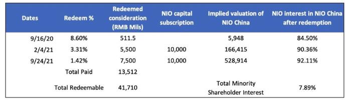 從那時起,蔚來已經(jīng)分別三次贖回這些股份。詳情列于下表。