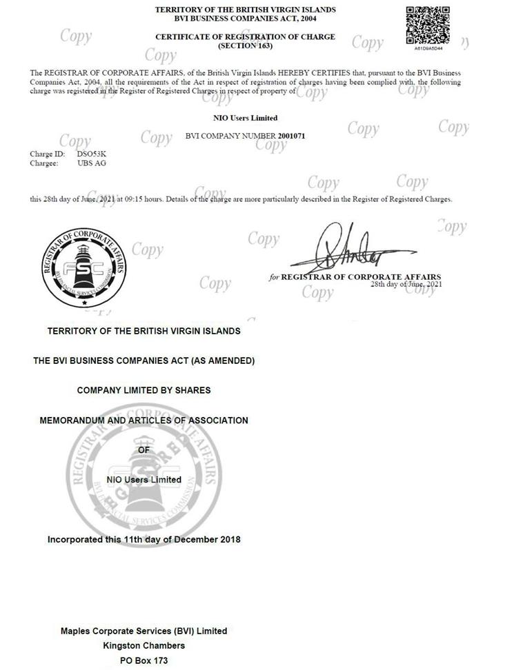我們能夠從英屬維爾京群島檢索到的文件顯示,在2021年6月,NIO User Trust已經(jīng)被抵押給瑞銀集團(tuán)。