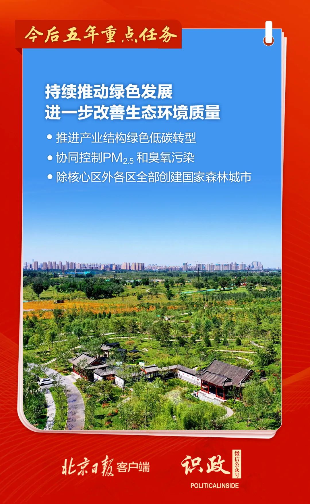 2022年6月27日上午,中國共產黨北京市第十三次代表大會開幕。中央政治局委員,北京市委書記蔡奇同志作黨代會報告。報告指出,今后五年,北京要持續(xù)推動綠色發(fā)展,進一步改善生態(tài)環(huán)境質量。牢固樹立綠水青山就是金山銀山理念,大力實施綠色北京戰(zhàn)略,努力讓綠水青山藍天成為首都的靚麗底色。