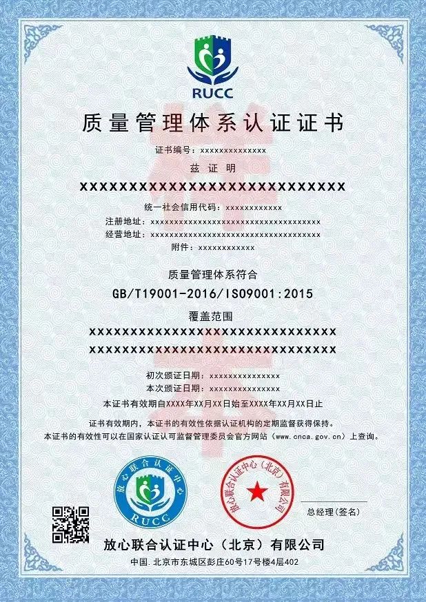 質(zhì)量管理體系認(rèn)證證書(shū)式樣