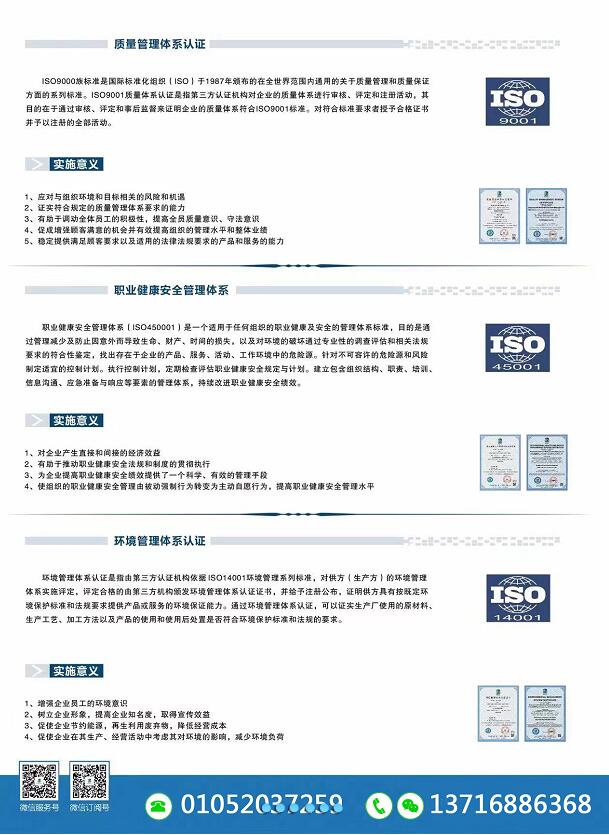 放心聯(lián)合認(rèn)證中心(北京)有限公司經(jīng)過(guò)多年的努力,取得了長(zhǎng)足的發(fā)展,目前已經(jīng)具備質(zhì)量、環(huán)境、職業(yè)健康安全、汽車(chē)救援服務(wù)認(rèn)證、品牌認(rèn)證、企業(yè)誠(chéng)信認(rèn)證等多體系認(rèn)證資質(zhì)和能力,本中心基于過(guò)程和管理的系統(tǒng)方法,通過(guò)創(chuàng)新和優(yōu)化認(rèn)證程序,全面提高企業(yè)的質(zhì)量、環(huán)境、職業(yè)健康安全管理水平、服務(wù)能力以及產(chǎn)品質(zhì)量、企業(yè)信譽(yù)的提升,最終達(dá)到組織整體績(jī)效的持續(xù)改進(jìn)。
