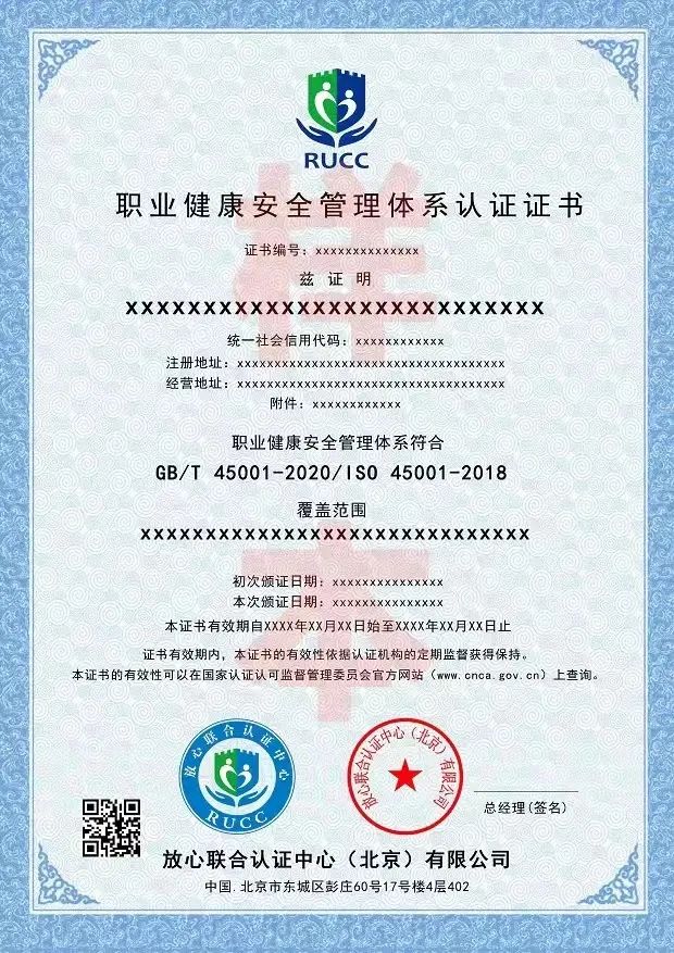 職業(yè)健康安全管理體系認(rèn)證證書(shū)式樣