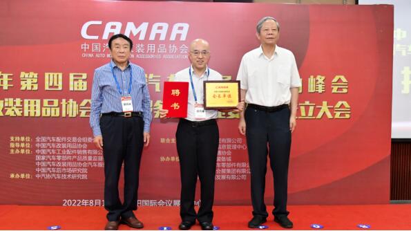中國汽車改裝用品協(xié)會汽車服務業(yè)專業(yè)委員會成立大會上,中汽聯(lián)會長、中國汽車工業(yè)協(xié)會后市場委員會常務副理事長、中國汽車工業(yè)配件銷售有限公司原董事長王篤洋當選為中國汽車服務業(yè)委員會首任會長,中國機械工業(yè)聯(lián)合會執(zhí)行副會長張克林,中國汽車改裝用品協(xié)會會長李仁貴共同為王篤洋會長頒發(fā)證書和銅牌。