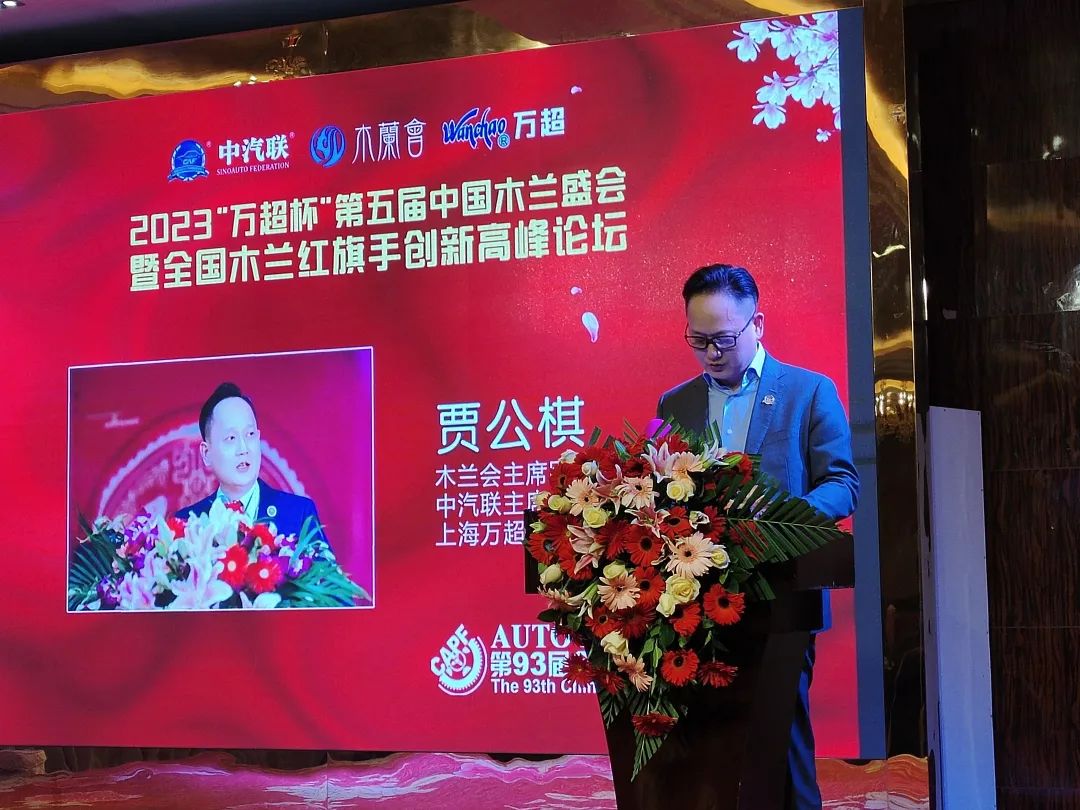中汽聯(lián)主席、木蘭會主席團主席、上海萬超汽車天窗有限公司董事長賈公棋宣讀2023萬超杯《中國汽車業(yè)木蘭宣言》