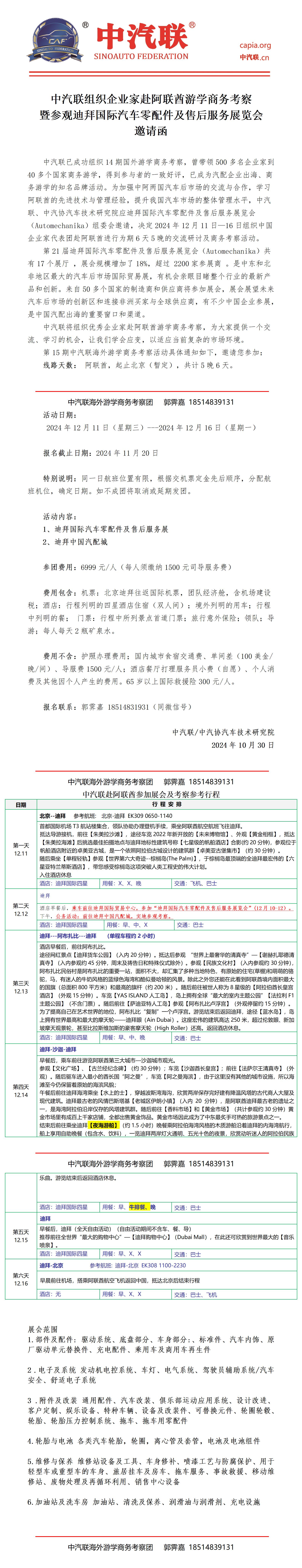 (Automechanika)組委會邀請,決定2024年12月11日—16日組織中國企業(yè)家代表團赴阿聯(lián)酋進行為期6天5晚的交流研討及商務考察活動。