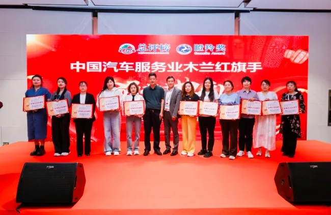中汽聯(lián)執(zhí)行會長、中汽協(xié)汽車技術(shù)研究院院長喬永鋒和上海京滬投資有限公司董事長鐘建平為全國木蘭紅旗手頒發(fā)證書