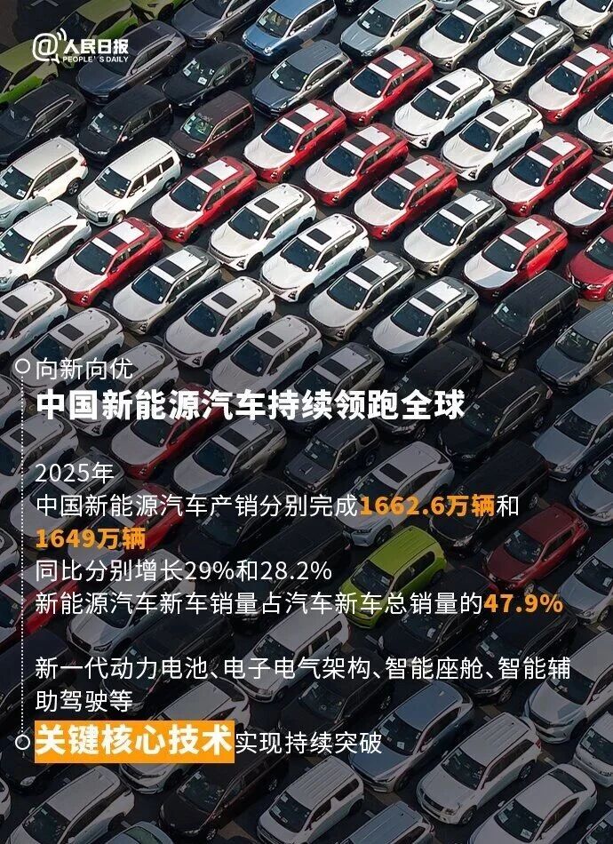 新能源汽車成為市場主導力量。2025年新能源汽車產(chǎn)銷分別完成1662.6萬輛和1649萬輛,同比分別增長29%和28.2%,國內(nèi)新車銷量占比首次突破50%,標志著中國汽車市場實現(xiàn)了從傳統(tǒng)燃油車主導到新能源汽車引領(lǐng)的歷史性跨越。