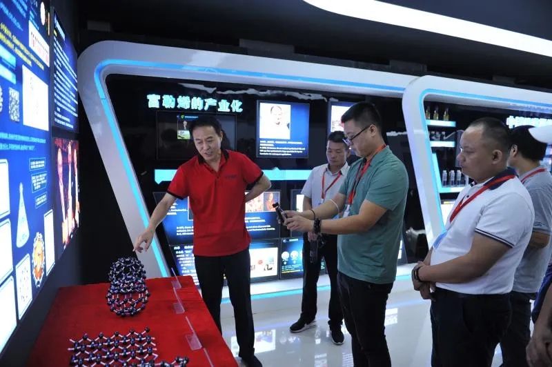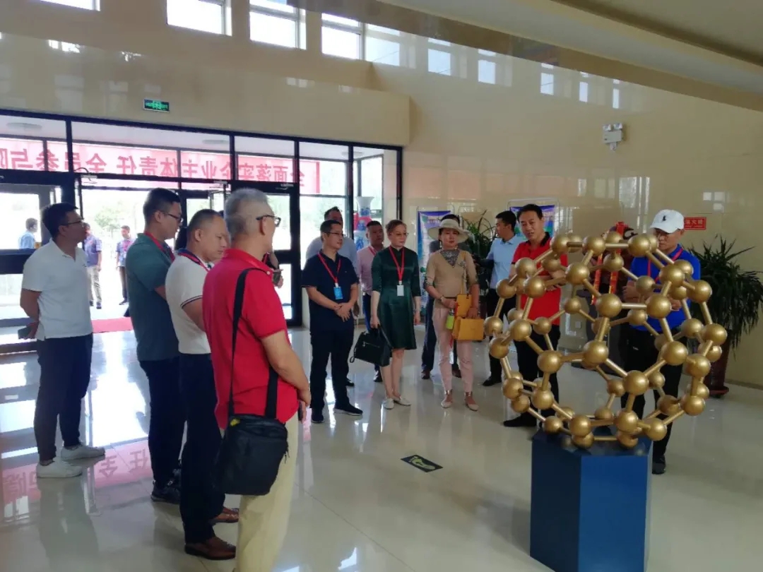碳立方科技有限公司董事長、內(nèi)蒙古碳谷科技有限公司董事長孫永青帶領(lǐng)中汽聯(lián)一行參觀了富勒烯研發(fā)基地及生產(chǎn)車間并親自作了講解。孫董事長指出富勒烯是最具代表性的碳納米材料,是繼金剛石、石墨之后人類發(fā)現(xiàn)的又一種碳的同素異形體,現(xiàn)在人們比較熟悉的是C60,只有0.7納米,它在1985年由英國和美國三個科學家在實驗室發(fā)現(xiàn)的,于1996年獲得諾貝爾化學獎。2015年9月,碳谷科技在呼和浩特舉辦了“世界富勒烯大會”,富勒烯的發(fā)現(xiàn)者-諾貝爾獎獲得者克羅托爵士,中國科學院院士、歐洲科學院院士、法國、英國、瑞典、俄羅斯、意大利、美國、日本等國的科學家等全球多個國家,多個領(lǐng)域的頂級科學家參會進行學術(shù)交流。2018年7月5日,碳谷科技在呼和浩特市的生產(chǎn)基地,舉辦了“中國首條富勒烯噸級生產(chǎn)線投產(chǎn)暨國際富勒烯產(chǎn)業(yè)發(fā)展論壇”,與世界上20余位富勒烯領(lǐng)域的頂級科學家,就富勒烯產(chǎn)業(yè)化應(yīng)用,做了深入的交流探討,推進一部分合作項目的健康發(fā)展。孫董事長介紹目前富勒烯應(yīng)用比較廣泛的大概有4個領(lǐng)域:國防軍工領(lǐng)域、工業(yè)新材料領(lǐng)域、生物醫(yī)藥及健康領(lǐng)域、新能源及環(huán)保領(lǐng)域。孫董事長認為富勒烯現(xiàn)在已經(jīng)不單單是一個簡單的工業(yè)材料,而是一個背負著工業(yè)強國使命的國家戰(zhàn)略材料。