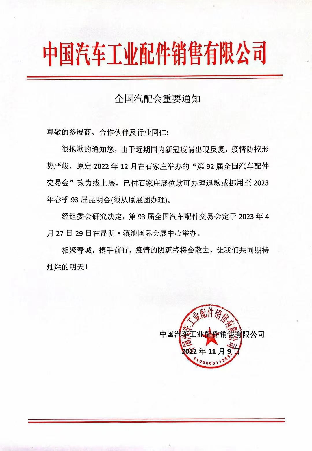 第93屆全國汽配會2023年4月昆明舉行