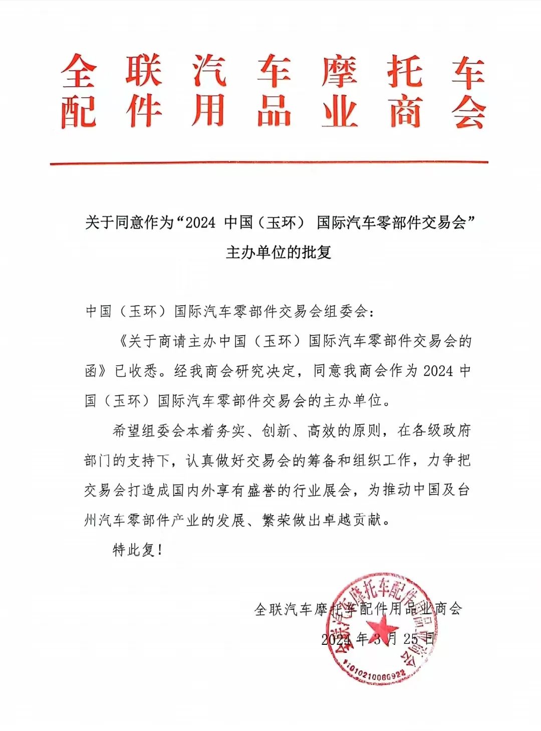 2024中國(guó)(玉環(huán))國(guó)際汽車(chē)零部件交易會(huì)