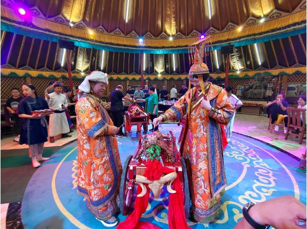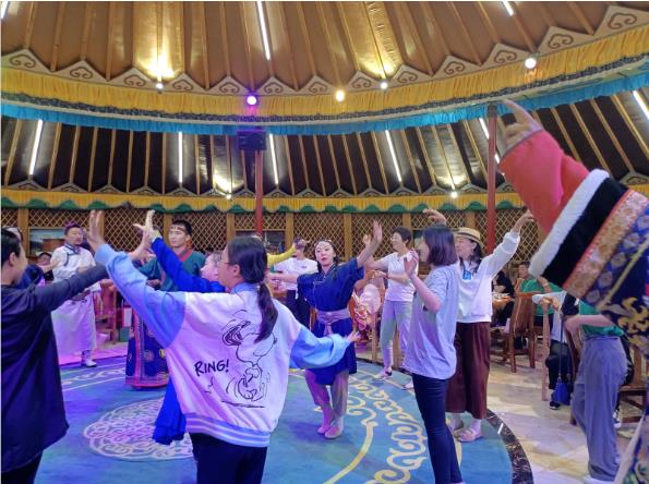 2022年8月1日-8月2日,第四屆草原大會草原英雄們馳騁在烏蘭布統(tǒng)大草原,乘越野車進(jìn)入烏蘭布統(tǒng)深處,體驗穿沙涉水,騎著駱駝漫步在大草原上。觀看了盛大的馬術(shù)實景劇蒼狼白鹿,欣賞了蒙古族姑娘小伙的颯爽英姿,馬腹藏人、馬背倒立、空中羅漢等精彩馬術(shù)表演,驚險與刺激并存,嗨翻全場。在蒙古大帳內(nèi)品嘗蒙古接待貴賓最崇高禮儀——烤全羊,席間看原生態(tài)蒙古族歌舞表演,聽馬頭琴演奏等。草原英雄們還乘車前往克旗,游覽規(guī)模最大、類型最多、保存最完整的大青山冰臼地質(zhì)公園景區(qū);乘坐內(nèi)蒙古最長纜車上山,觀看有九缸十八鍋之稱的第四季冰川作用下的冰臼群,象天然盆景一樣矗立山巔,還觀賞了“關(guān)公思蜀、壽星石、臥虎石、仙人對弈、神駝峰”等奇峰怪石,整個行程輕松愉快、歌聲笑聲不斷,大家放松心情、完全沉浸在美麗的草原中!