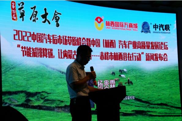 2022年8月3日下午,2022中國汽車后市場草原峰會暨中國(林西)汽車產(chǎn)業(yè)高質(zhì)量發(fā)展論壇、“節(jié)能減排降碳,讓內(nèi)蒙古更美麗——赤峰市林西縣在行動”新聞發(fā)布會在林西東山瀾汀鮮惠德生態(tài)餐廳會議中心舉行。林西縣人民政府副縣長孟慶輝,林西縣政協(xié)副主席、林西縣交通運輸局局長張明,中國人民武裝警察部隊特種警察學(xué)院副院長章立果,原國防科工委質(zhì)檢中心主任張軍,中華慈善總會副秘書長張潔,國家環(huán)保部機動車排污監(jiān)控中心研究員總工韓應(yīng)健,國家汽車零部件產(chǎn)品質(zhì)量監(jiān)督檢驗中心副主任楊貴霖等領(lǐng)導(dǎo)和嘉賓,來自全國各地的第四屆草原大會近50位草原英雄和50余名林西企業(yè)家參會,會議由中汽聯(lián)秘書長郭霽嘉主持。