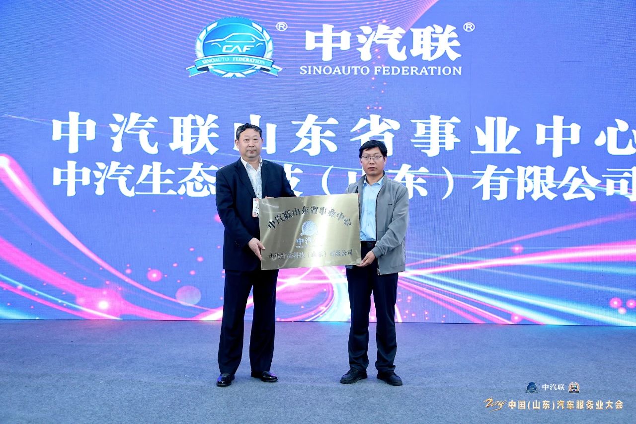 中汽聯(lián)集團(tuán)董事長(zhǎng)、全國(guó)機(jī)動(dòng)車數(shù)字化專委會(huì)執(zhí)行會(huì)長(zhǎng)喬永鋒向劉昌勇頒授山東省事業(yè)中心、中汽生態(tài)科技(山東)有限公司銅牌,中汽聯(lián)山東省事業(yè)中心正式揚(yáng)帆起航。