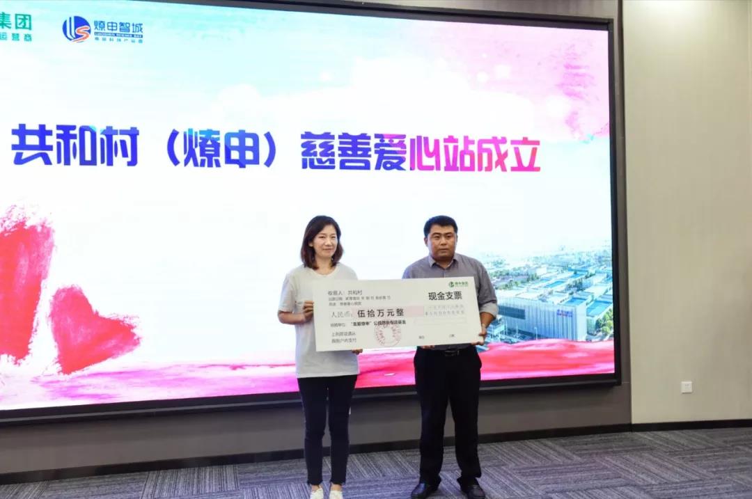 燎申集團(tuán)現(xiàn)場捐款50萬元成立共和村(燎申)慈善愛心站