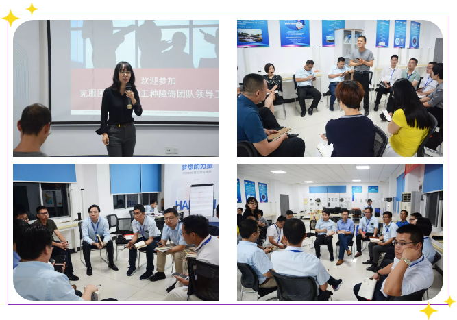 企業(yè)文化中心總監(jiān)張寧女士以引導(dǎo)師的身份引導(dǎo)全員對團(tuán)隊(duì)協(xié)作的五項(xiàng)障礙進(jìn)行了整體解讀,并結(jié)合每個(gè)團(tuán)隊(duì)的團(tuán)隊(duì)五項(xiàng)障礙測評結(jié)果進(jìn)行了分析。各小組成員亦主動(dòng)結(jié)合自身團(tuán)隊(duì)五項(xiàng)障礙測評最高分項(xiàng)和最低分項(xiàng)進(jìn)行了分享和原因剖析。學(xué)員們通過聆聽、思考、小組分享,意識到了現(xiàn)有團(tuán)隊(duì)存在的優(yōu)點(diǎn)及不足。