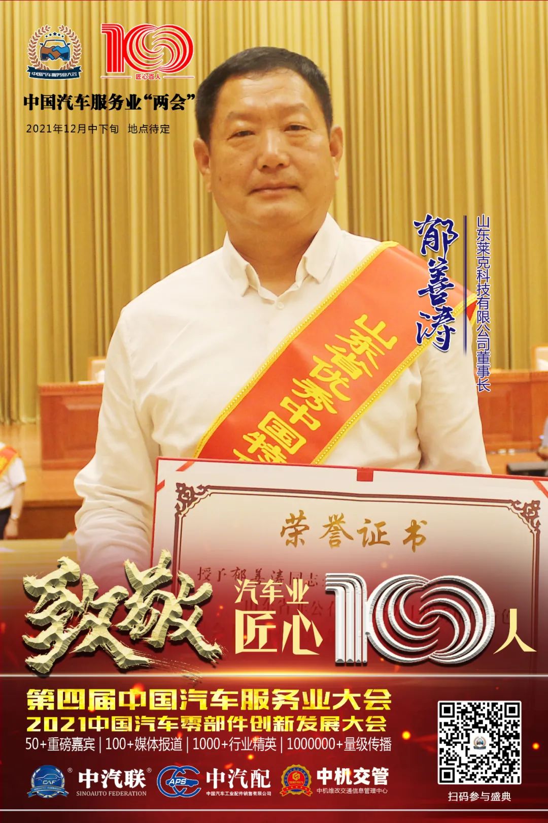 據(jù)第四屆中國汽車服務業(yè)大會組委會介紹,中汽聯(lián)副主席、山東萊克科技有限公司董事長郁善濤入選“百年百人”中國汽車業(yè)匠心100人。