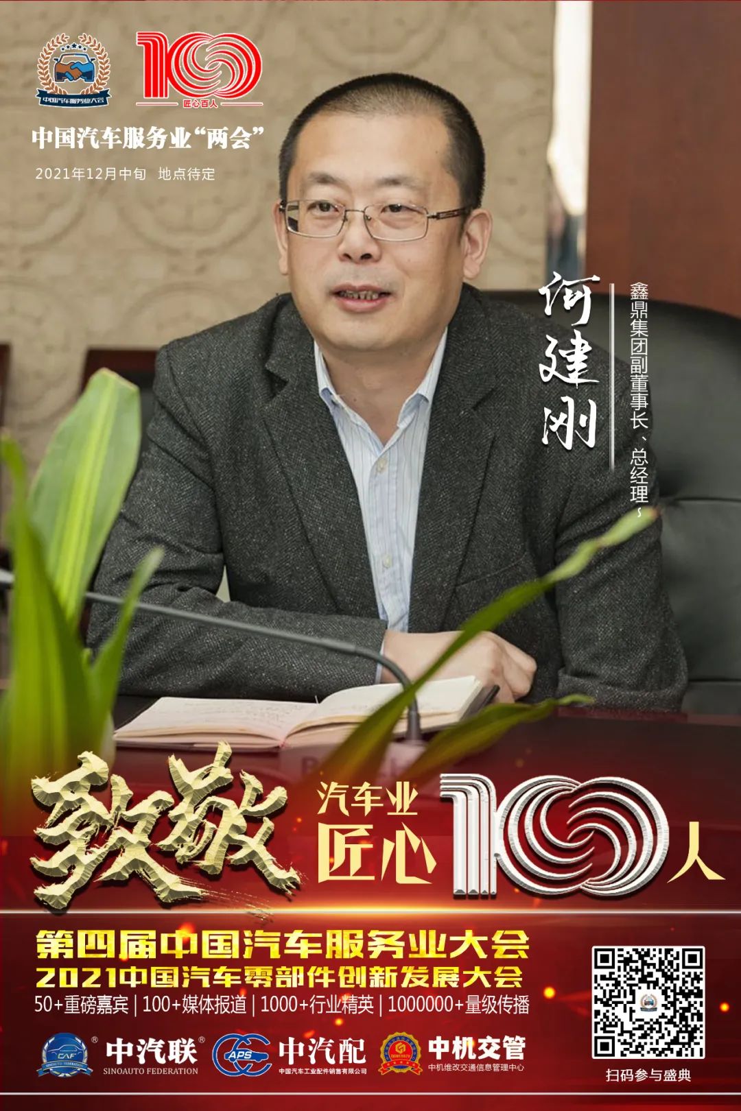 據(jù)第四屆中國汽車服務(wù)業(yè)大會(huì)組委會(huì)介紹,中汽聯(lián)副會(huì)長(zhǎng),鑫鼎集團(tuán)副董事長(zhǎng)、總經(jīng)理何建剛?cè)脒x“百年百人”中國汽車業(yè)匠心100人。