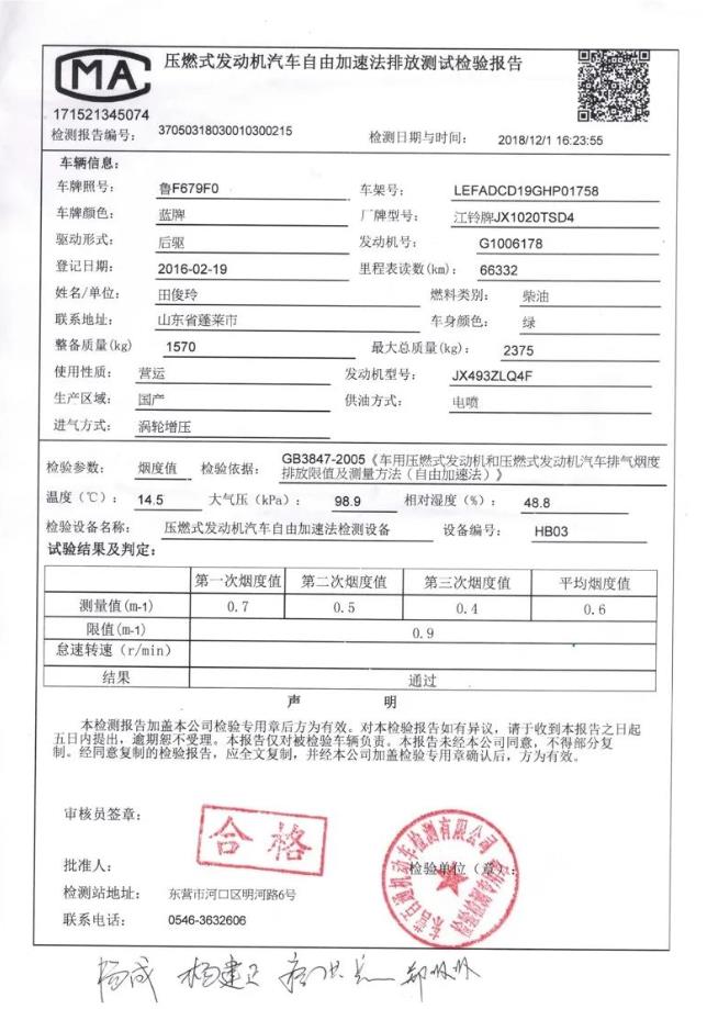 在多人的見證下,我們在山東省東營市某石油煉化廠,選取了一輛江鈴皮卡車進(jìn)行實(shí)車測試,測試前后均在同一個(gè)加油站進(jìn)行加油,使用普通柴油測試時(shí),尾氣排放平均數(shù)值為2.7,遠(yuǎn)超國家規(guī)定的尾氣排放限值,而同樣的油加入節(jié)能環(huán)保燃油母液(金圣節(jié)能環(huán)保柴油)后,行駛200公里再次進(jìn)行尾氣排放檢測時(shí),尾氣排放平均數(shù)值為0.6,排放合格。