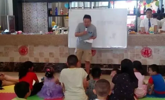 在歡樂的氣氛中,哈哈老爸給孩子們講了“大衛(wèi)惹麻煩”,一個(gè)淘氣的美國(guó)孩子惹麻煩,在麻煩中學(xué)會(huì)懂規(guī)矩,學(xué)會(huì)自立、學(xué)會(huì)愛的故事。