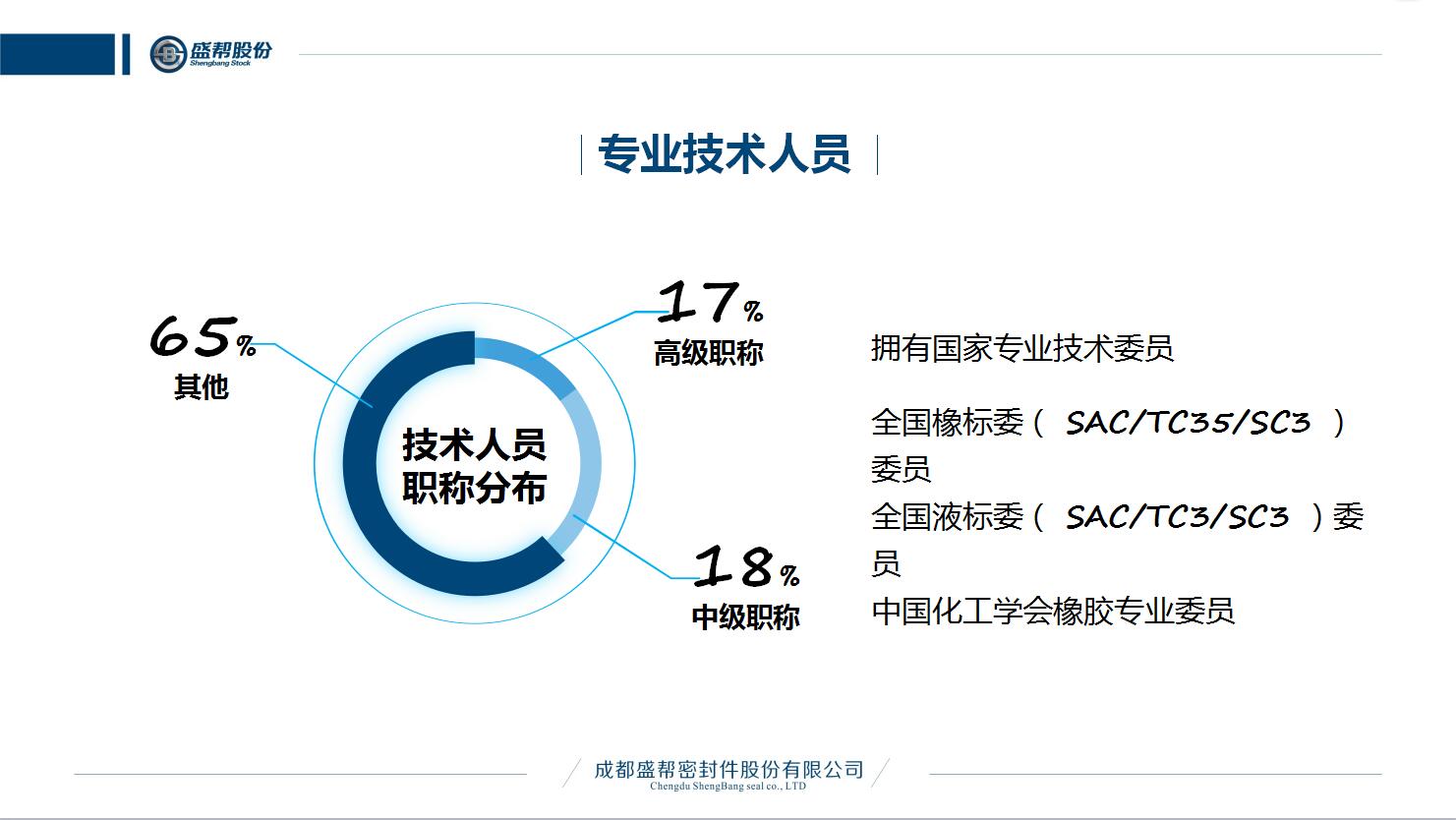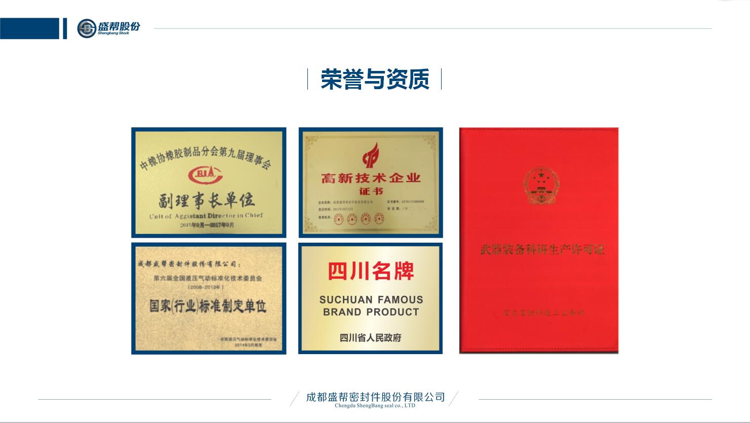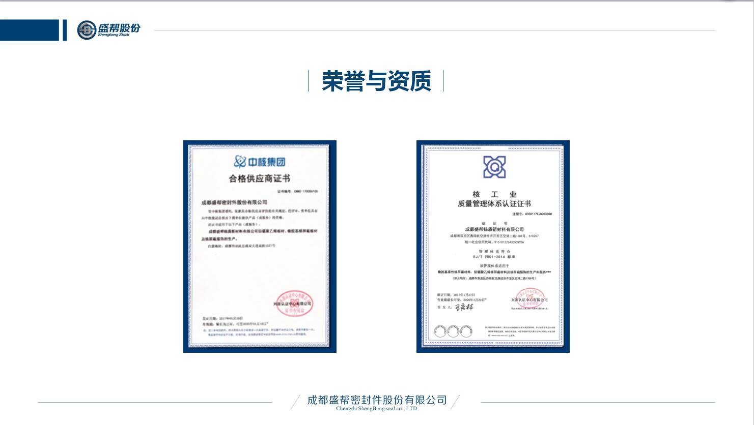成都盛幫密封件股份有限公司,于2004年6月設立于成都市雙流區(qū)成雙大道南段1077號,是國內專業(yè)從事高分子(復合)材料的研發(fā)與運用的國家級高新技術企業(yè)、新三板掛牌企業(yè)(股票代碼831247),主要生產汽車動力總成系統(tǒng)關鍵密封件、智能電網橡膠絕緣制品、特種裝備復合材料、核防護服及屏蔽材料等特種橡膠制品,產品覆蓋領域廣,技術水平國內領先。