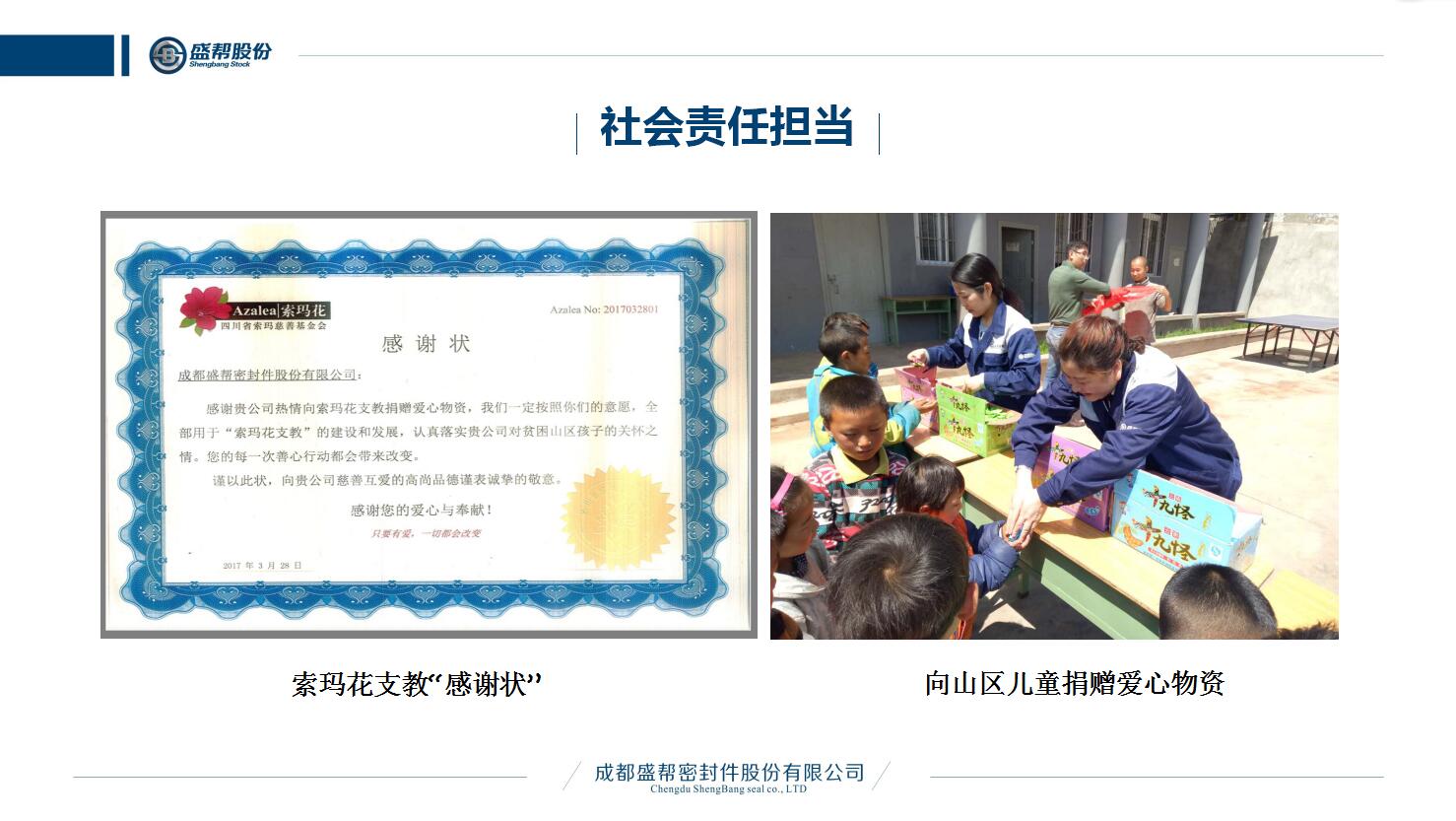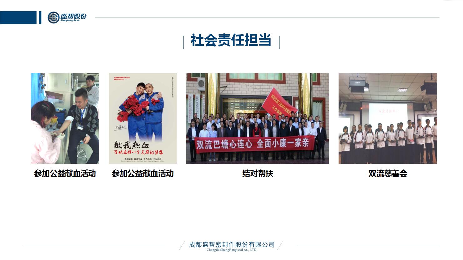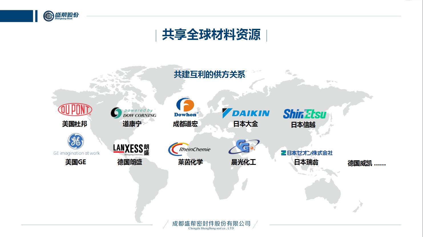 成都盛幫密封件股份有限公司,于2004年6月設立于成都市雙流區(qū)成雙大道南段1077號,是國內專業(yè)從事高分子(復合)材料的研發(fā)與運用的國家級高新技術企業(yè)、新三板掛牌企業(yè)(股票代碼831247),主要生產汽車動力總成系統(tǒng)關鍵密封件、智能電網橡膠絕緣制品、特種裝備復合材料、核防護服及屏蔽材料等特種橡膠制品,產品覆蓋領域廣,技術水平國內領先。