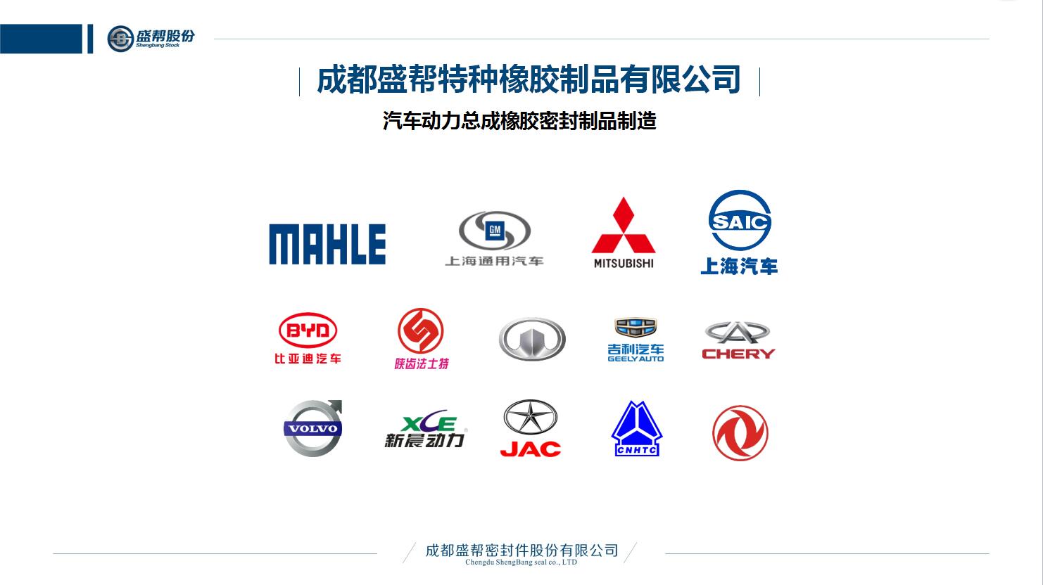成都盛幫密封件股份有限公司,于2004年6月設(shè)立于成都市雙流區(qū)成雙大道南段1077號,是國內(nèi)專業(yè)從事高分子(復(fù)合)材料的研發(fā)與運用的國家級高新技術(shù)企業(yè)、新三板掛牌企業(yè)(股票代碼831247),主要生產(chǎn)汽車動力總成系統(tǒng)關(guān)鍵密封件、智能電網(wǎng)橡膠絕緣制品、特種裝備復(fù)合材料、核防護服及屏蔽材料等特種橡膠制品,產(chǎn)品覆蓋領(lǐng)域廣,技術(shù)水平國內(nèi)領(lǐng)先。