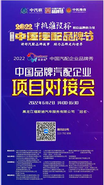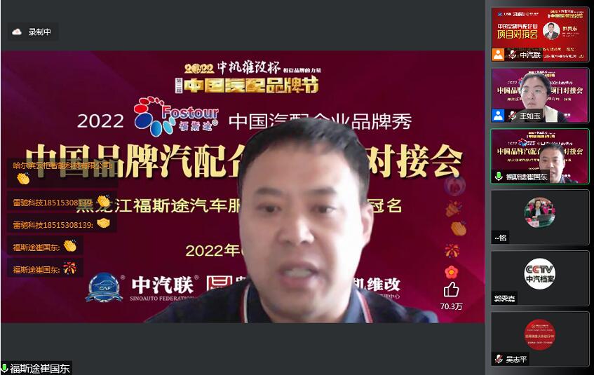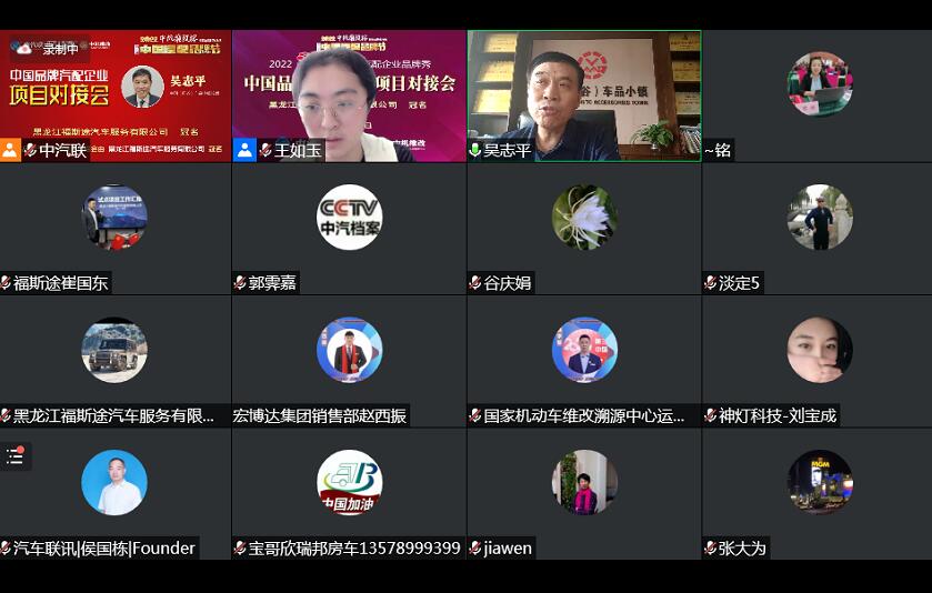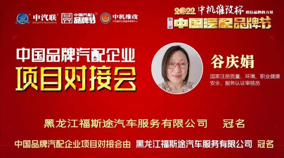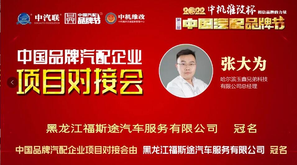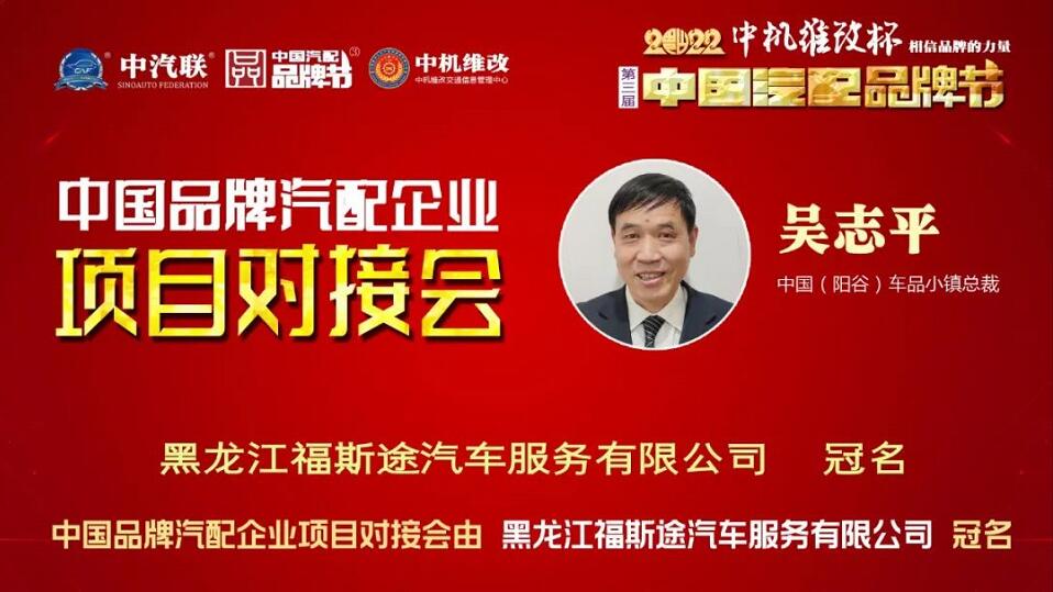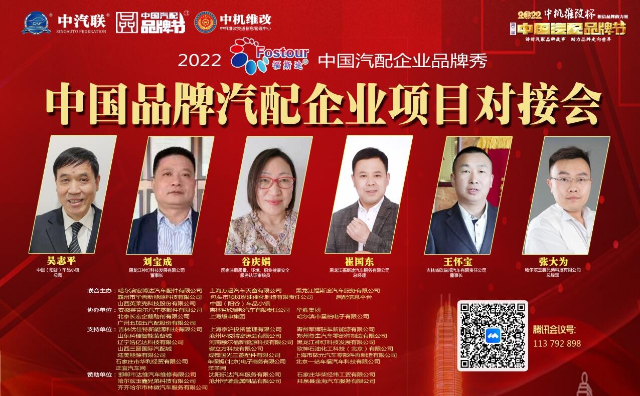 2022年6月2日,“2022 福斯途杯 中國汽配企業(yè)品牌秀”的第四場活動,由 黑龍江福斯途汽車服務(wù)有限公司 特約冠名播出的2022中國品牌汽配企業(yè)項目對接會在線上成功舉行,中國(陽谷)車品小鎮(zhèn)總裁、中汽聯(lián)商業(yè)地產(chǎn)委員會常務(wù)副主席兼秘書長吳志平,黑龍江神燈科技發(fā)展有限公司董事長劉寶成,北京放心聯(lián)合認(rèn)證中心(北京)有限公司審核部經(jīng)理、國家注冊質(zhì)量、環(huán)境、職業(yè)健康安全、服務(wù)認(rèn)證審核員谷慶娟,黑龍江福斯途汽車服務(wù)有限公司總經(jīng)理、中國汽配品牌節(jié)副秘書長崔國東,哈爾濱玉鑫兄弟科技有限公司總經(jīng)理張大為 等嘉賓出席汽配企業(yè)品牌秀并做了精彩分享,引起了行業(yè)的廣泛關(guān)注,點贊數(shù)量達(dá)到80萬個。2022中國品牌汽配企業(yè)項目對接會由中汽聯(lián)執(zhí)行秘書長、中國汽配品牌節(jié)常務(wù)秘書長王如玉主持。