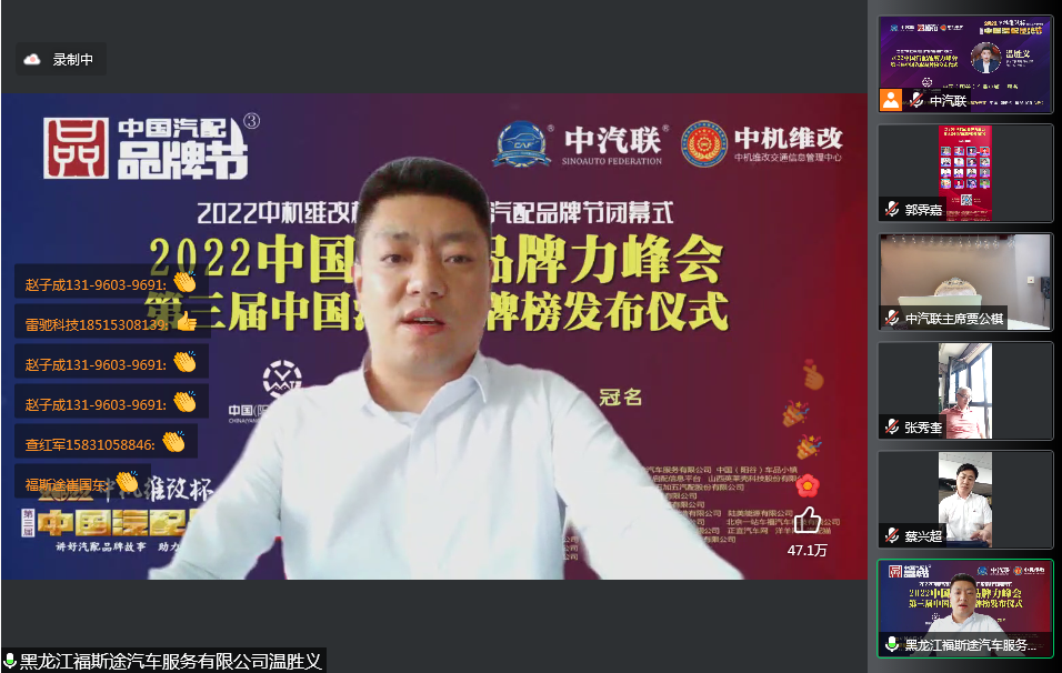 2022中國汽配品牌力峰會在線上成功舉行