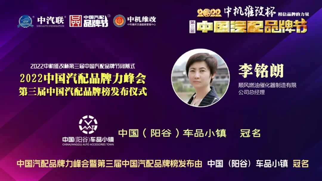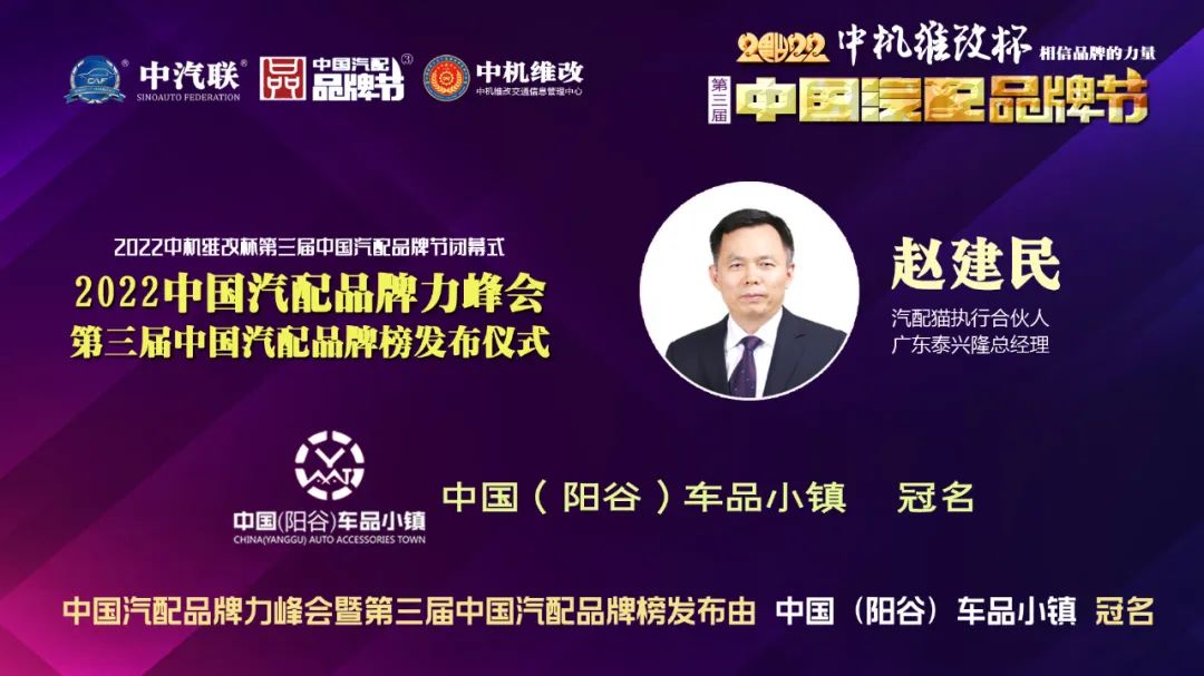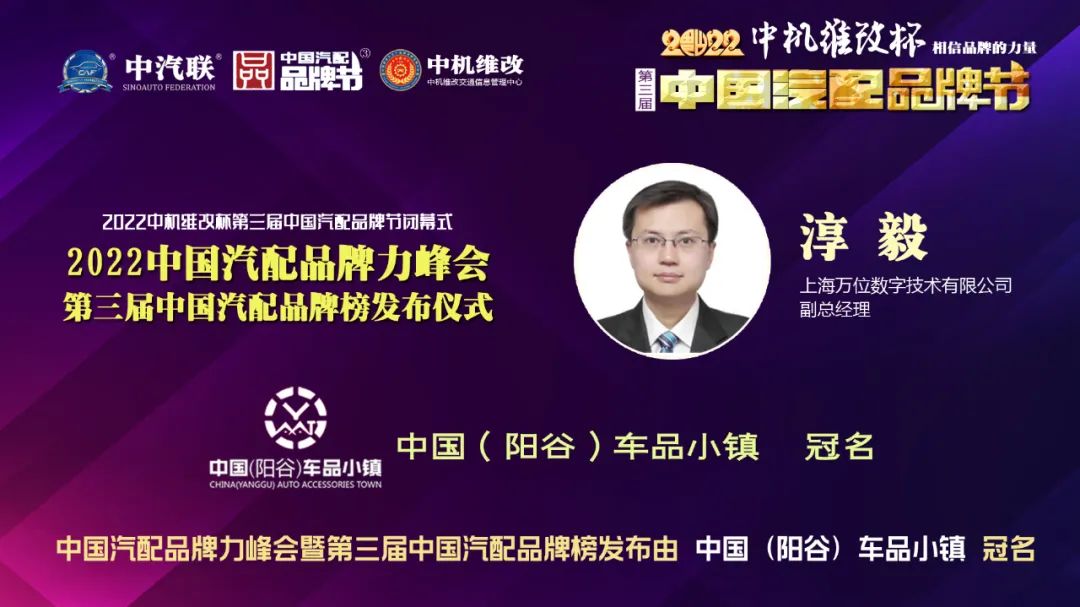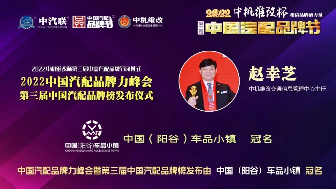 2022年6月10日,由 中國(陽谷)車品小鎮(zhèn) 特約冠名播出的2022中國汽配品牌力峰會暨第三屆中國汽配品牌榜發(fā)布儀式 在線上成功舉行,中國汽車服務(wù)業(yè)委員會會長、中國汽車工業(yè)協(xié)會后市場委員會執(zhí)行副理事長、中國汽車工業(yè)配件銷售有限公司原董事長、中汽聯(lián)會長王篤洋,上海萬超汽車天窗有限公司董事長、中汽聯(lián)主席、中國汽配品牌節(jié)主席賈公棋,國家汽車零部件產(chǎn)品質(zhì)量監(jiān)督檢驗中心副主任、中國汽配品牌節(jié)組委會主任楊貴霖,中國機(jī)動車全產(chǎn)業(yè)鏈備案追溯中心主任、中機(jī)維改交通信息管理中心主任趙幸芝,浙江省汽摩配商會會長、瑞立集團(tuán)董事長張曉平,順風(fēng)燃油催化器制造有限公司總經(jīng)理李銘朗,黑龍江福斯途汽車服務(wù)有限公司董事長溫勝義,宏博達(dá)科技集團(tuán)有限公司總裁李寶龍,汽配貓創(chuàng)始人趙建民,上海萬位數(shù)字技術(shù)股份有限公司副總經(jīng)理淳毅,華利汽配連鎖總經(jīng)理孫耀瑋,中國(陽谷)車品小鎮(zhèn)總裁吳志平,安徽太和晶宮國際汽車城總經(jīng)理蔡興超,中汽聯(lián)示范基地委員會會長張秀奎,中汽聯(lián)秘書長、中國汽配品牌節(jié)副主席兼秘書長郭霽嘉 等汽配大咖出席中國汽配品牌節(jié)閉幕式并做了精彩分享,引起了廣泛關(guān)注,點贊數(shù)量達(dá)到124.2萬個。
