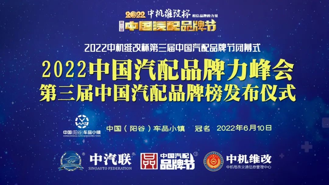 2022中機(jī)維改杯中國汽配品牌節(jié)由中機(jī)維改交通信息管理中心獨家總冠名,由中汽聯(lián)、中汽配、中機(jī)維改 共同主辦;哈爾濱宏博達(dá)汽車配件有限公司、上海萬超汽車天窗有限公司、中國(陽谷)車品小鎮(zhèn)、黑龍江福斯途汽車服務(wù)有限公司、包頭市順風(fēng)燃油催化器制造有限責(zé)任公司、霸州市華善新能源科技有限公司、啟配信息平臺、山西英萊殼科技股份有限公司 聯(lián)合主辦;由華勝集團(tuán)、上海燎申集團(tuán)、吉林欣瑞邦汽車有限責(zé)任公司、安徽英克爾汽車零部件有限公司、北京長宏企鵝助劑有限公司、哈爾濱市星柏電子有限公司、廣州五加五汽配股份有限公司 友情協(xié)辦;由吉林優(yōu)佳特新能源科技有限公司、上海京滬投資管理有限公司、青州軍輝駐車新能源有限公司、山東科佳智能裝備城、鄭州尊生汽車零部件制造有限公、滄州環(huán)銳精密鑄造有限公司、遼寧浩億達(dá)科技有限公司、河南頤爾福新能源科技有限公司、黑龍江神燈科技發(fā)展有限公司、山西三晉國際汽配城、歐神石油化工科技(北京)有限公司、碳立方科技有限公司、陸美能源有限公司、上海市銥元汽車零部件再制造有限公司、成都國光三菱配件有限公司、石家莊市華利經(jīng)貿(mào)有限公司、車保姆(北京)電子商務(wù)有限公司、北京一站車福汽車科技有限公司、正宜汽車網(wǎng)、洋羊網(wǎng)、汽配貓 特別支持;邯鄲市達(dá)維汽車維修有限公司、沈陽樂達(dá)汽車服務(wù)有限公司、哈爾濱玉鑫兄弟科技有限公司、滄州守諾金屬制品有限公司、拜泉縣金海汽車服務(wù)有限公司、齊齊哈爾市林微汽車服務(wù)有限公司、石家莊華柴經(jīng)緯工貿(mào)有限公司 友情贊助;由德州市鑫雙恒汽車服務(wù)有限公司、浚縣李春亮汽車維修門市部 、滄州春立汽車服務(wù)有限公司、臨沂富裕汽車服務(wù)有限公司、綏中縣宏騰汽車服務(wù)有限公司、榆樹市鑫運程汽車服務(wù)限公司、綏中縣鑫發(fā)汽車服務(wù)有限公司、臨清市浩航汽車服務(wù)有限公司、中能國業(yè)(北京)科技有限公司 特別祝賀。