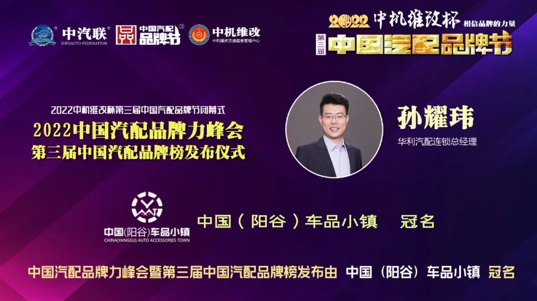 華利汽配連鎖總經(jīng)理孫耀瑋 出席2022中國汽配品牌力峰會并做了精彩分享。平臺標(biāo)準(zhǔn)化、服務(wù)專業(yè)化、渠道規(guī)范化、運營效率化。創(chuàng)一流品牌,建百年華利。華利成立于1992年成立,至今已有30多年發(fā)展歷史,華利汽配連鎖憑借優(yōu)質(zhì)齊全的產(chǎn)品和服務(wù),銷售網(wǎng)絡(luò)遍及全國,是華北地區(qū)最大的汽車零部件批發(fā)、零售貿(mào)易企業(yè)。